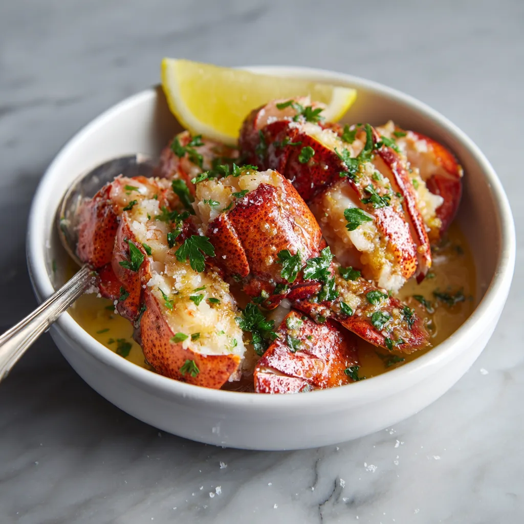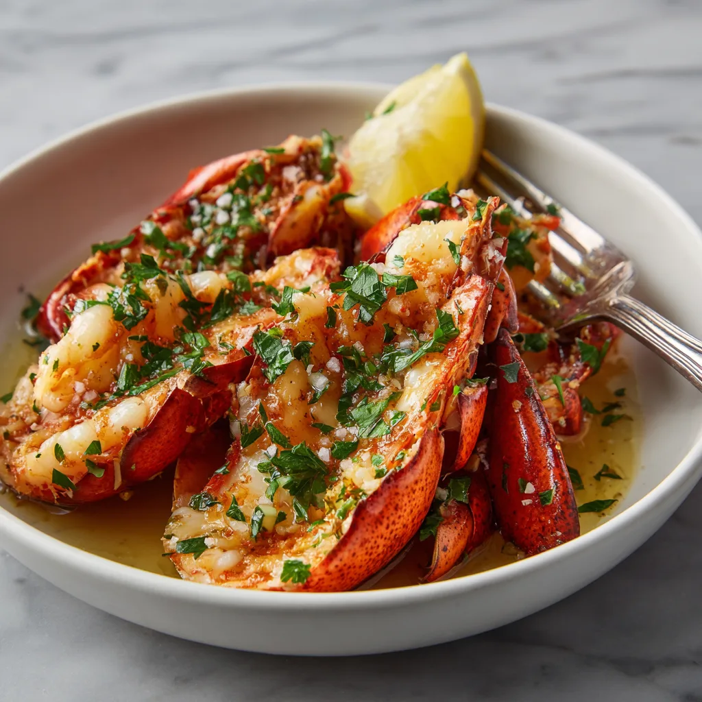 Tender lobster meat basted in rich garlic butter and finished with lemon and herbs.
