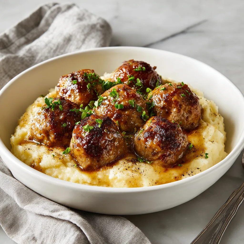 Bourbon Glazed Pork Meatballs & Mash is the ultimate comfort food dish—savory, rich, and irresistibly flavorful. Perfect for a cozy weeknight dinner or a special weekend meal, this recipe brings together tender, juicy pork meatballs coated in a luscious bourbon glaze, paired with creamy mashed potatoes that melt in your mouth. Combining classic comfort flavors with a touch of sophistication, this dish is a guaranteed crowd-pleaser.