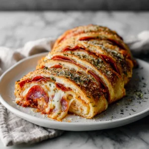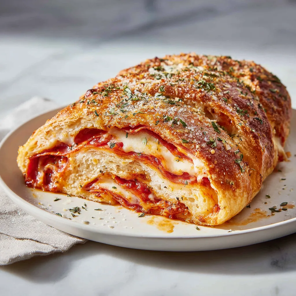 If pizza night and comfort food had a delicious baby, it would be this Cheesy Pepperoni Pizza Stromboli. Golden on the outside, irresistibly gooey on the inside, and packed with classic pizza flavors, stromboli is the kind of recipe that instantly upgrades any casual dinner, game day spread, or weekend gathering. This version leans hard into what everyone loves most—melty mozzarella, savory pepperoni, garlic-butter crust, and just enough marinara to keep every bite juicy without getting soggy.