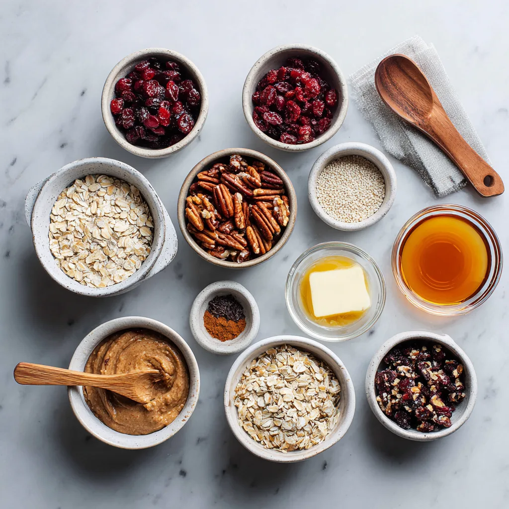 - In a large mixing bowl, combine rolled oats, dried cranberries, and chopped pecans. Stir until evenly distributed.