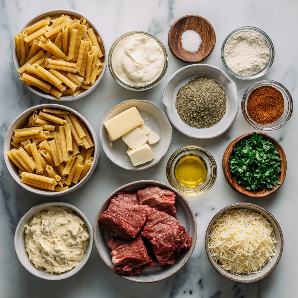Steak is often reserved for grilling or special occasions, but here it becomes an everyday luxury. When sliced thin and seared properly, it cooks quickly and stays juicy. The pasta acts as the perfect canvas, absorbing the sauce while letting the steak remain the star.