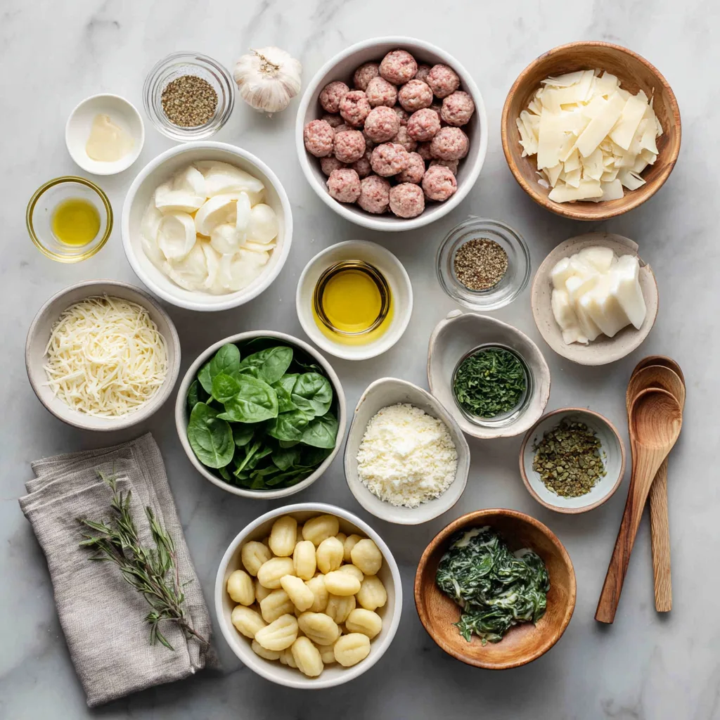 Ingredients for Creamy Sausage & Gnocchi Bake