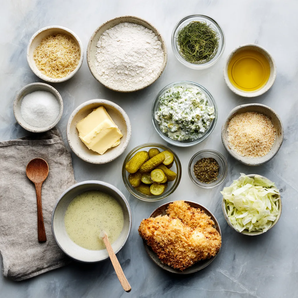 Ingredients for Crispy Dill Pickle Chicken with Creamy Garlic Sauce