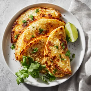 Fold tortillas over and gently press. Bake for 10 minutes, then flip and bake another 8–10 minutes until golden and crispy. - Garnish and Serve