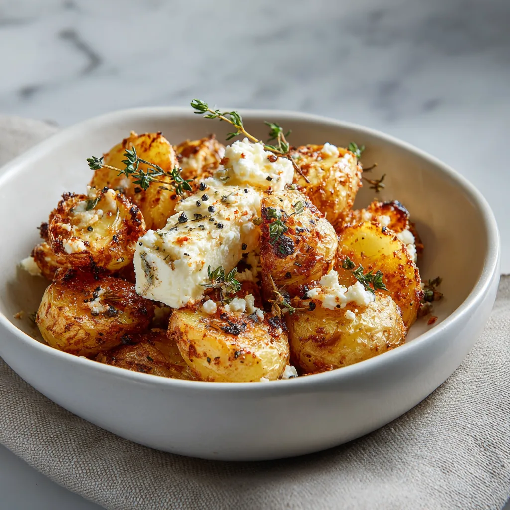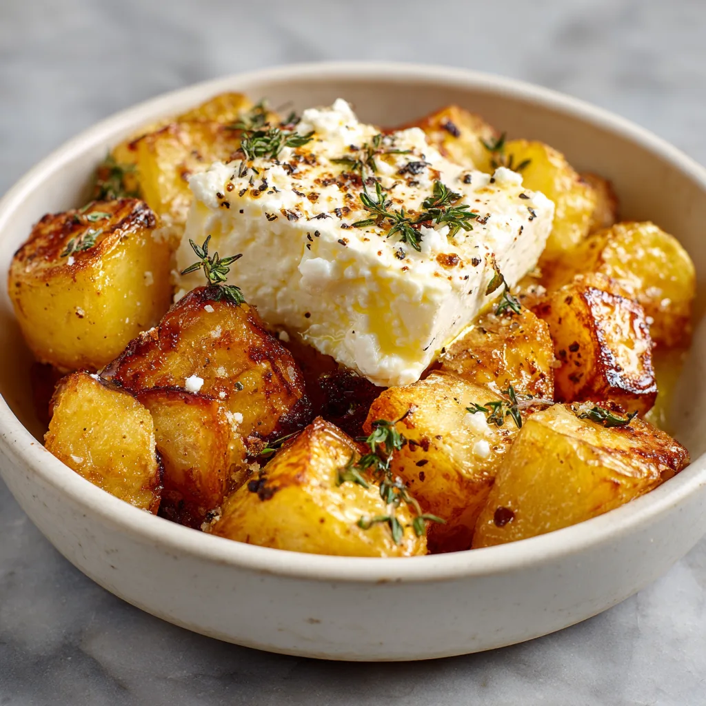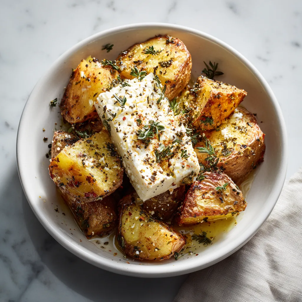Crispy Roasted Potatoes with Baked Feta: The Ultimate Comfort-Meets-Mediterranean Side Dish