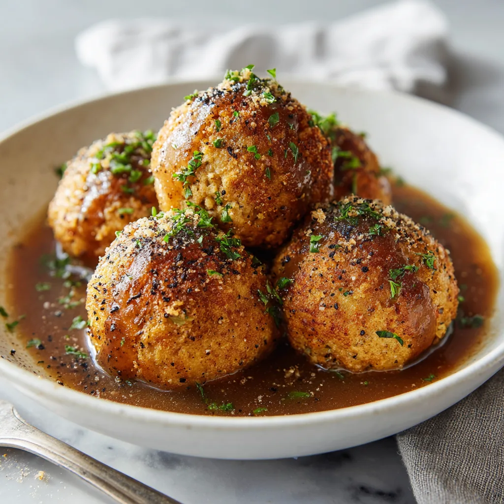 Crispy Turkey Stuffing Balls with Gravy – The Ultimate Comfort Food Reinvented