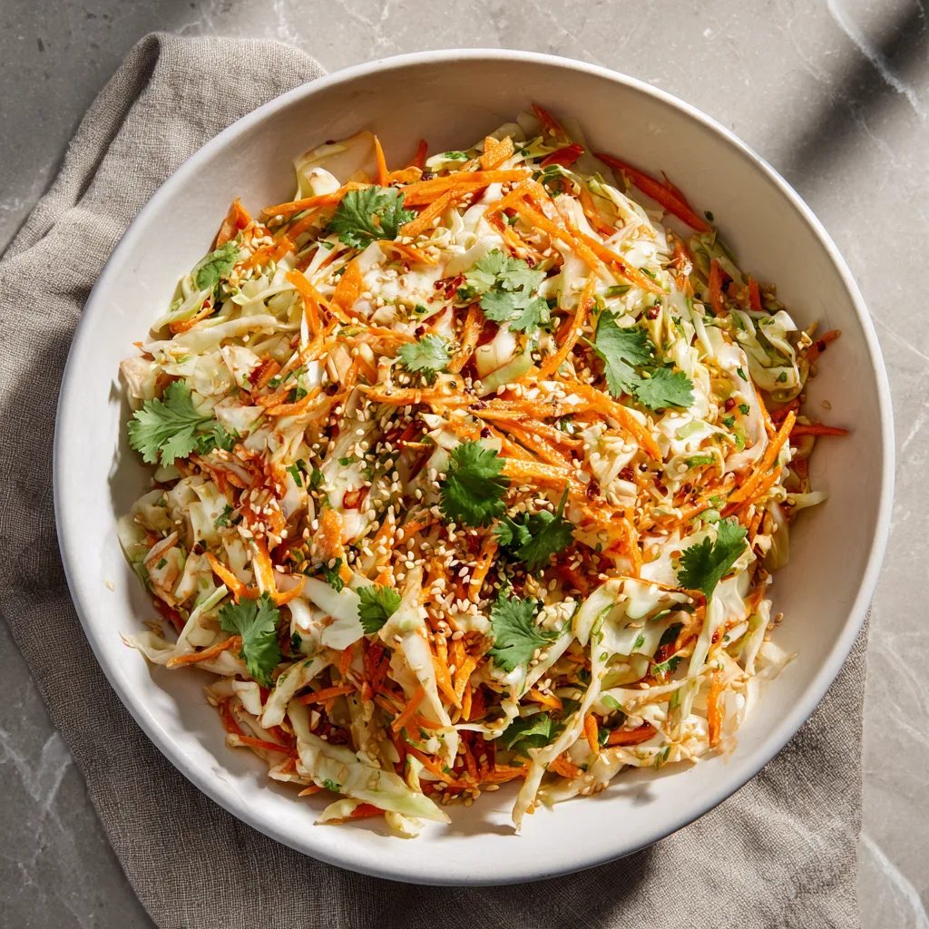 Unlike creamy coleslaw, this version stays fresh and crisp for hours. The sesame-ginger dressing lightly coats the vegetables instead of weighing them down, letting the natural textures shine through. Plus, it’s packed with nutrients — fiber, antioxidants, and healthy fats — making it just as nourishing as it is delicious.