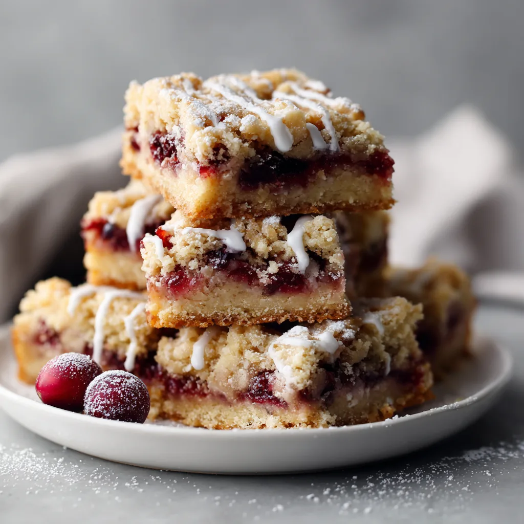 Cranberries have a way of instantly making any dessert feel special. Their ruby-red color pops against neutral backgrounds, and their naturally sharp flavor keeps sugary treats from becoming cloying. In these bars, the cranberries are gently cooked into a jammy layer that melts into the crust and crumble. The final drizzle of glaze adds just enough sweetness to make every bite irresistible.