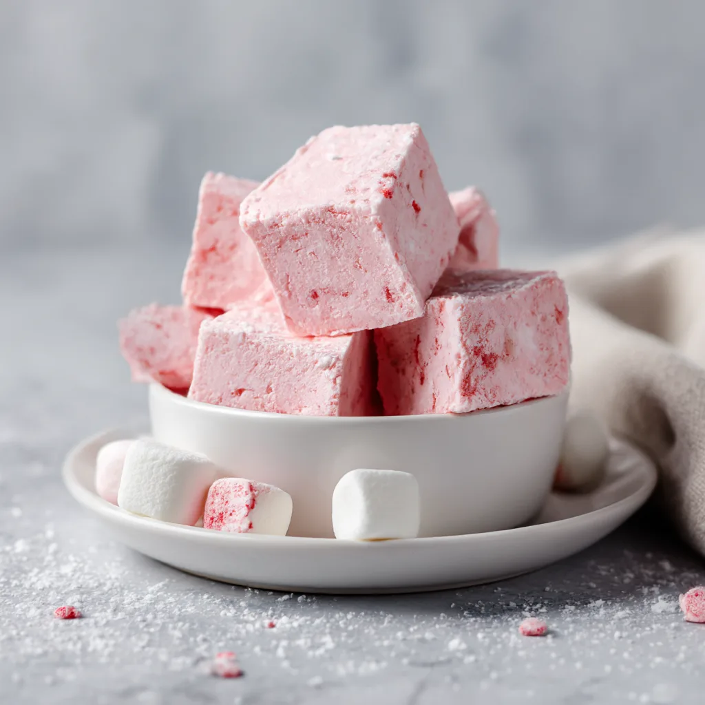8. Garnish and Serve: Before cutting, sprinkle extra mini marshmallows, crushed freeze-dried strawberries, or edible glitter for a festive touch. Cut into 1–2 inch squares and serve.
