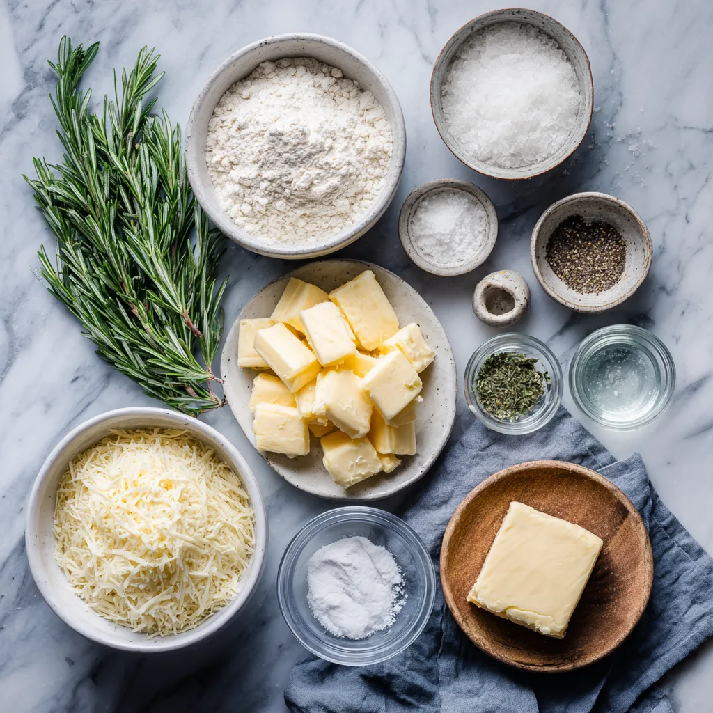 Each ingredient plays a role: butter creates flakiness, Parmesan adds umami depth, and rosemary introduces aromatic freshness.