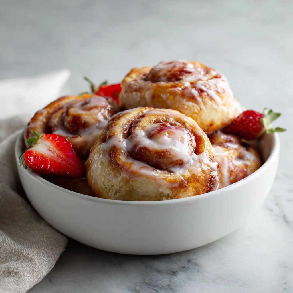 Unlike dry or dense rolls, these are ultra-pillowy thanks to a soft enriched dough and careful proofing. The strawberry filling is made with real berries for natural sweetness and color, giving each bite a bright, fruity contrast to the cinnamon warmth.