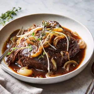 French onion pot roast is more than just another beef recipe. It’s a full sensory experience — the sweet aroma of onions slowly caramelizing, the savory depth of beef stock and herbs, and the luxurious texture of fork-tender beef that practically falls apart as you serve it. Whether you’re cooking for your family, hosting a weekend dinner, or meal-prepping for the week, this dish checks every box: simple, flavorful, and incredibly satisfying.