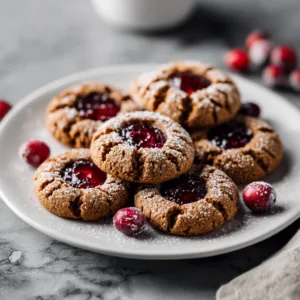 There are certain flavors that instantly signal the arrival of the holiday season. Gingerbread is one of them — warm, spiced, nostalgic, and comforting in a way few desserts can match. Now imagine that classic gingerbread flavor paired with a bright, tangy cranberry center that cuts through the richness and adds a pop of jewel-toned color. That’s exactly what Gingerbread Cranberry Thumbprints deliver.