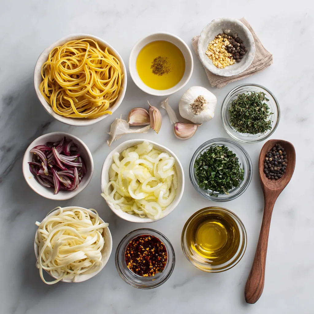 The secret is emulsification. When you combine oil, pasta water, and caramelized onions, the starch in the water helps bind everything into a silky sauce. That’s what gives the pasta its irresistible shine and clingy texture.