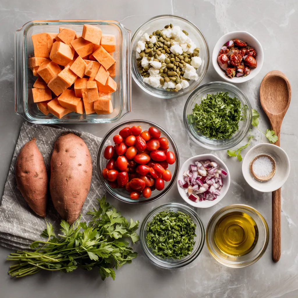This recipe combines the warmth of roasted sweet potatoes with the fresh, bold flavors of the Mediterranean. Not only is it colorful and visually stunning, but it’s also high in protein, fiber, and healthy fats — making it ideal for anyone looking for a nutrient-dense, plant-forward meal. Let’s explore how to make this delicious recipe step by step.
