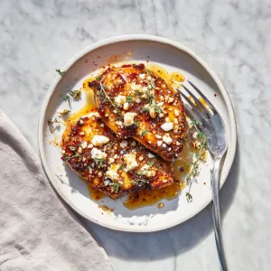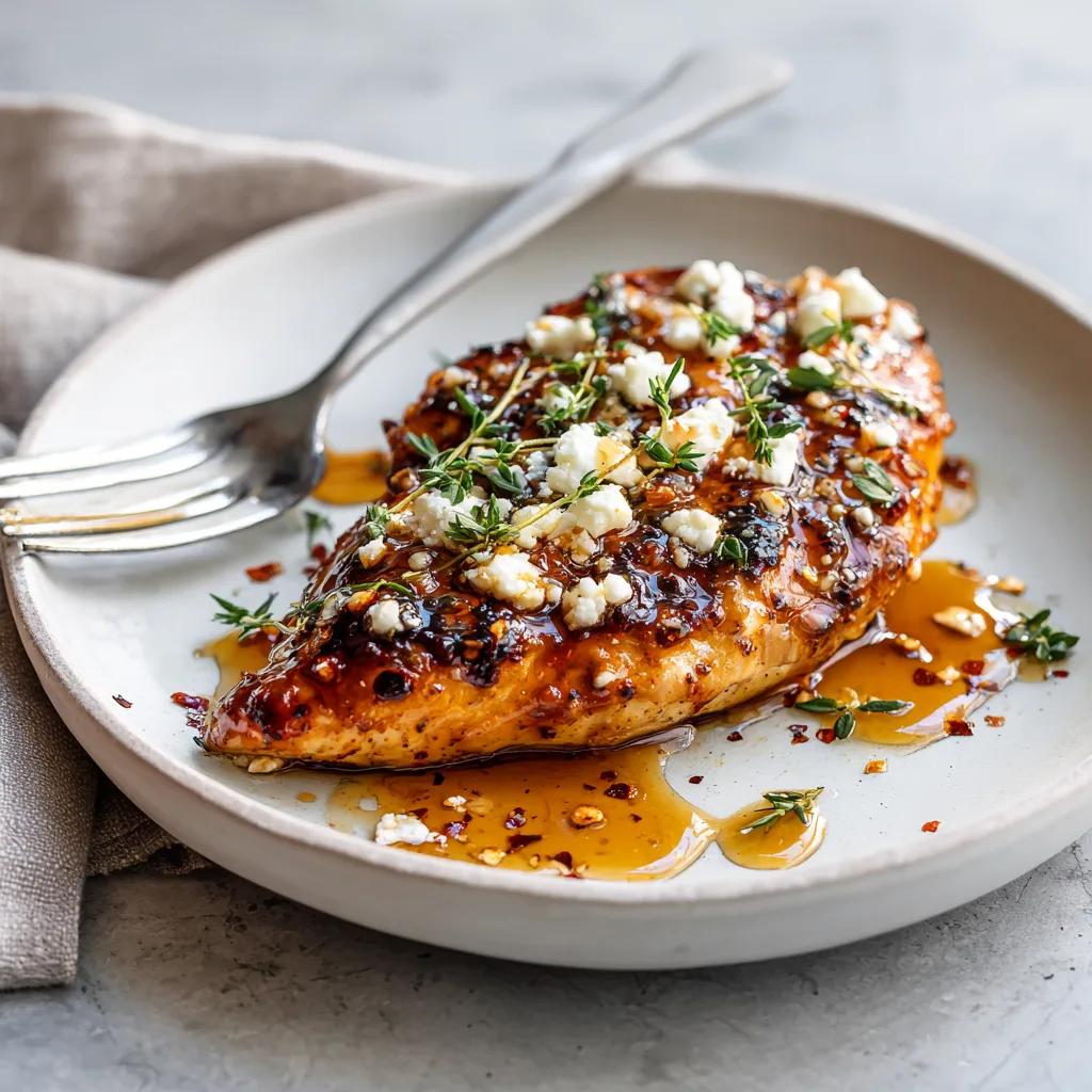 Juicy baked chicken glazed with hot honey and finished with tangy feta for a bold sweet-and-spicy dinner.