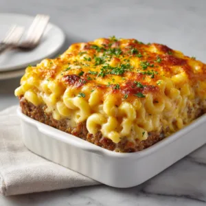 When comfort food cravings strike, few dishes satisfy quite like Mac and Cheese Meatloaf Casserole. This hearty, oven-baked masterpiece combines two iconic American classics—juicy meatloaf and creamy macaroni and cheese—into one irresistible, family-friendly casserole. It’s warm, filling, cheesy, and deeply nostalgic, making it perfect for busy weeknights, cozy weekends, or potluck gatherings where comfort food reigns supreme.