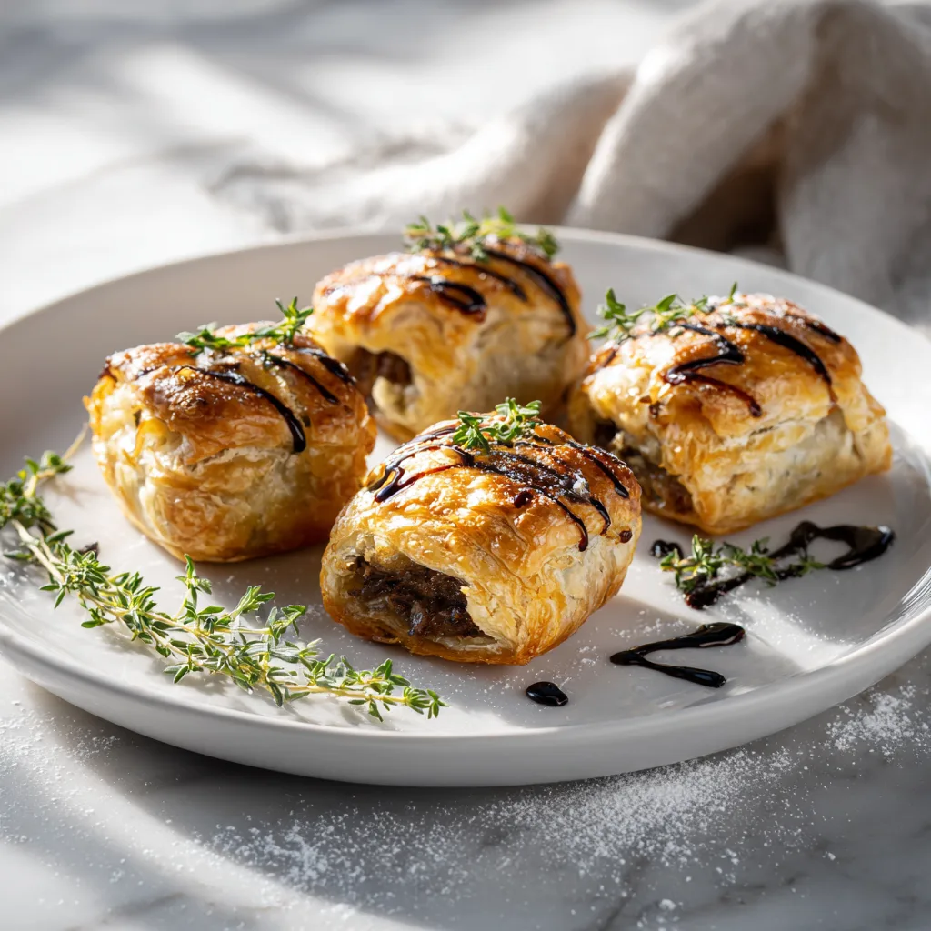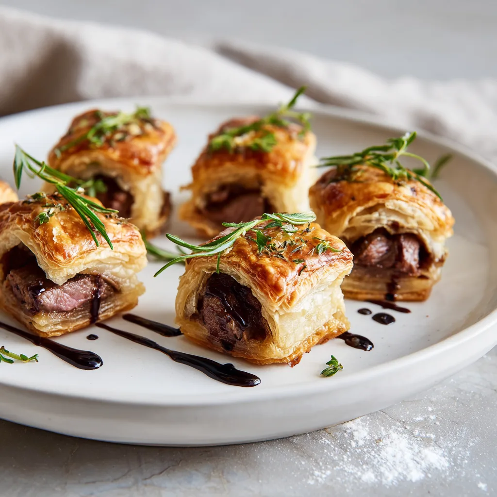 Keyword beef appetizer, easy hors d’oeuvres, Mini Beef Wellington, party snacks, puff pastry bites