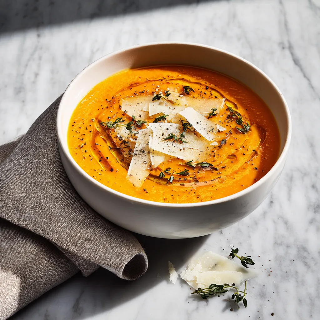 This soup balances natural sweetness with savory Italian herbs and umami-rich tomato and cheese. The texture is luxuriously smooth — like a bisque — without being heavy. It coats the spoon and feels indulgent while still being nourishing.