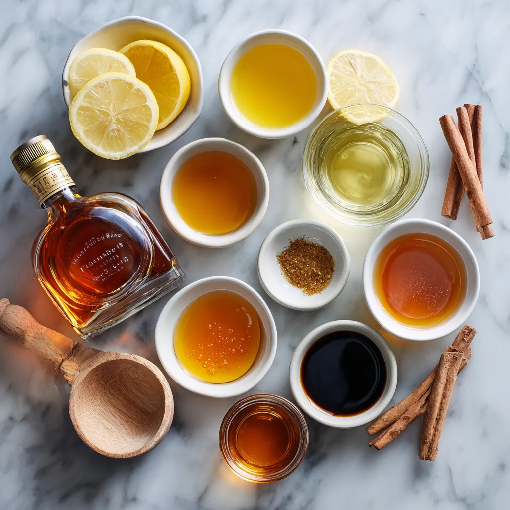 • Add non-alcoholic bourbon-style spirit, apple cider, lemon juice, and maple syrup.