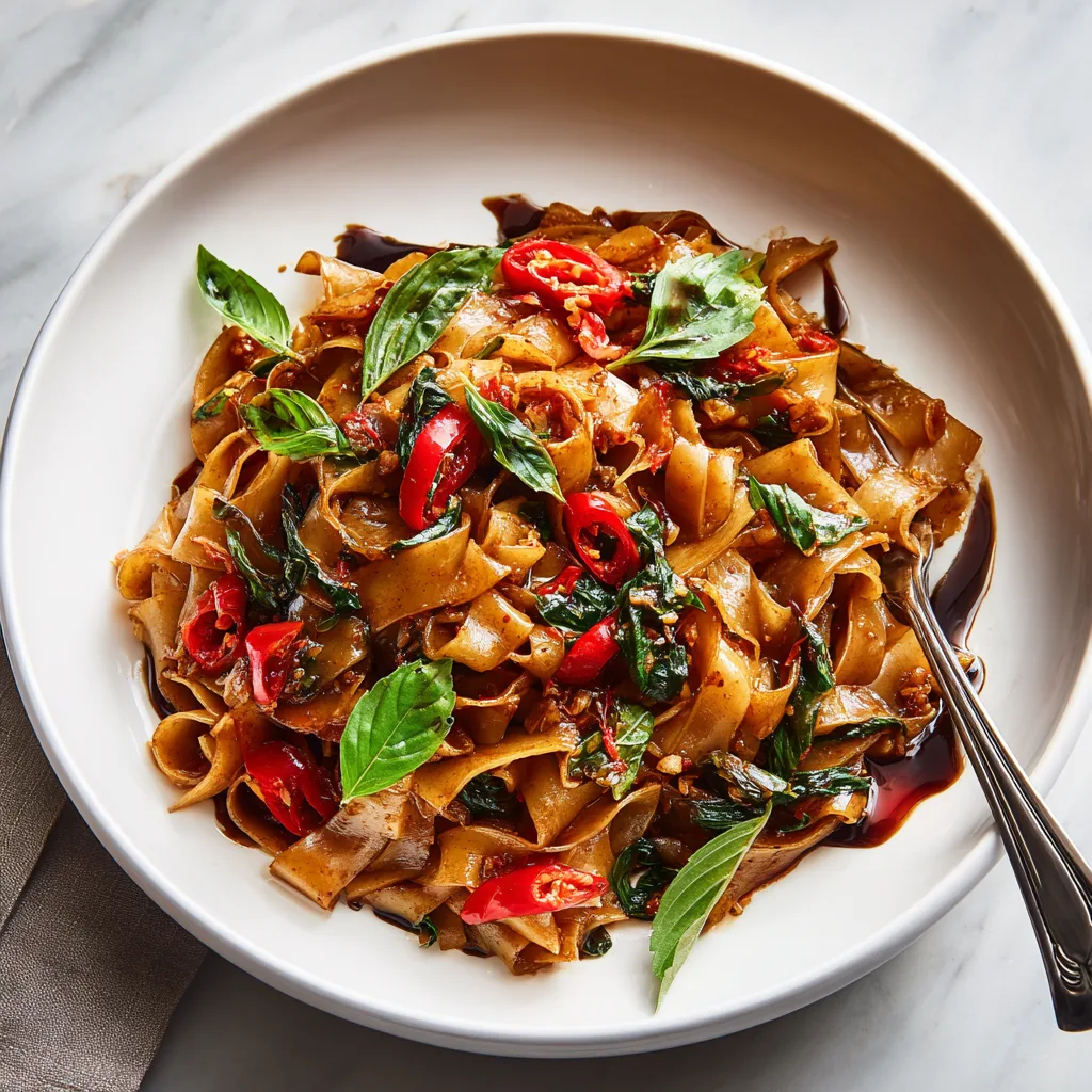 - Authentic Flavor: Uses real Thai ingredients like Thai basil, fish sauce, and wide rice noodles.