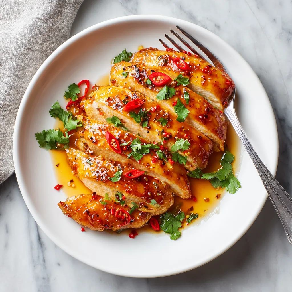 Remove the skillet from heat and let the chicken rest for a few minutes. Garnish with fresh cilantro and a pinch of red chili flakes if desired. - Serve: