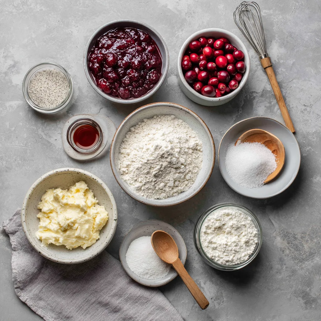 - Prepare cranberry topping: In a small saucepan, combine cranberries, sugar, and water. Cook over medium heat until cranberries burst and mixture thickens (about 10–15 minutes). Remove from heat and stir in orange zest. Let cool slightly.
