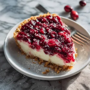 Not only is this recipe decadent and flavorful, but it’s also no-bake, making it perfect for home bakers who want a stress-free yet elegant dessert. With its buttery crust, velvety cheesecake filling, and a vibrant cranberry topping, it’s the ultimate centerpiece for your holiday table.