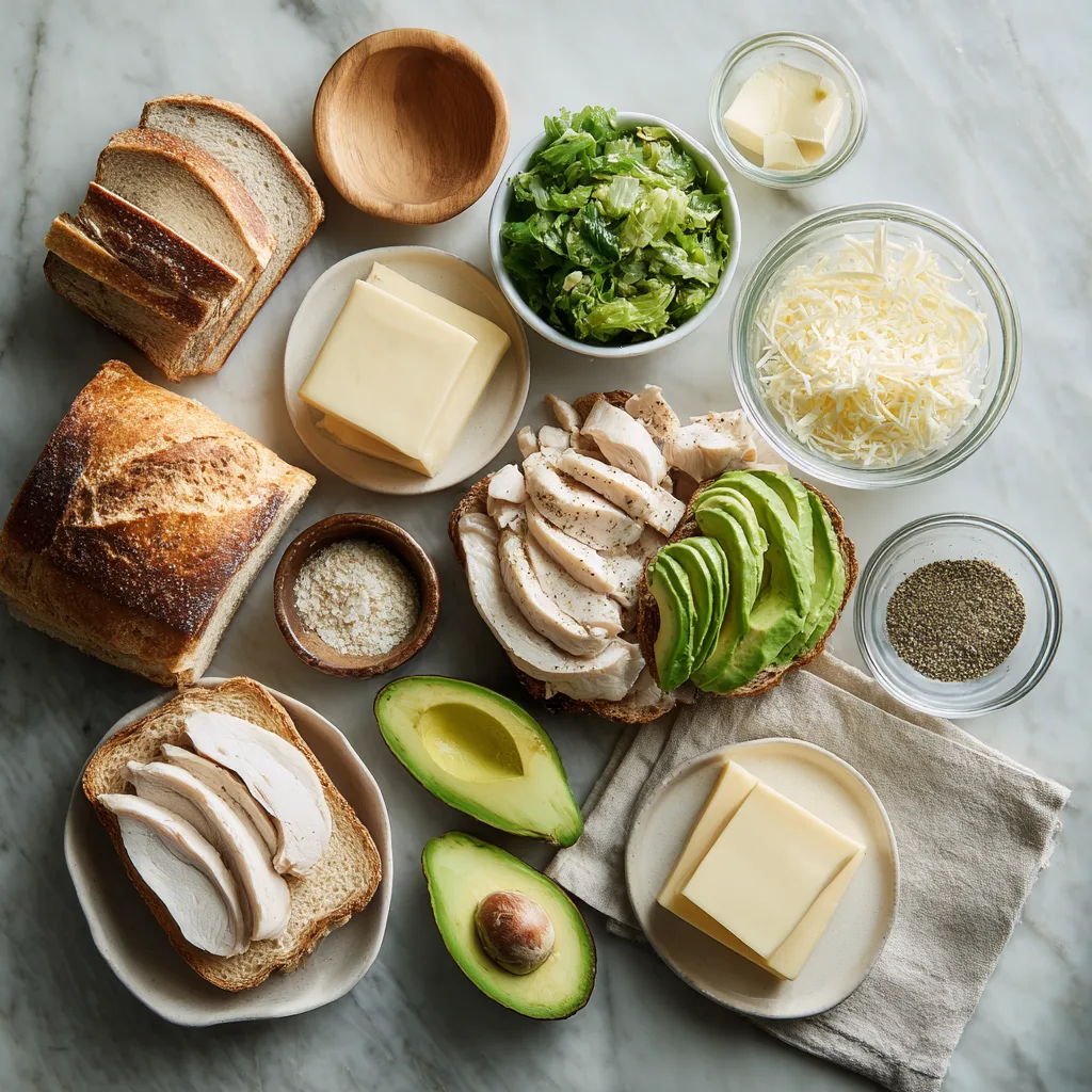 Ingredients for Ultimate Chicken Avocado Melt Sandwich