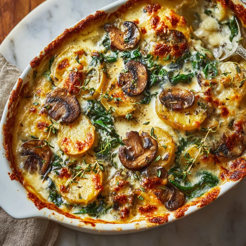 Ultra Creamy Mushroom & Spinach Potato Bake – Comfort Food at Its Finest