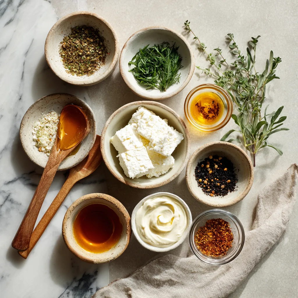 Add a pinch of sea salt, black pepper, and optional crushed red pepper flakes. Transfer dip to a serving bowl and garnish with fresh thyme or chives. Drizzle a tiny bit more hot honey on top for visual appeal. - Serve Immediately or Chill