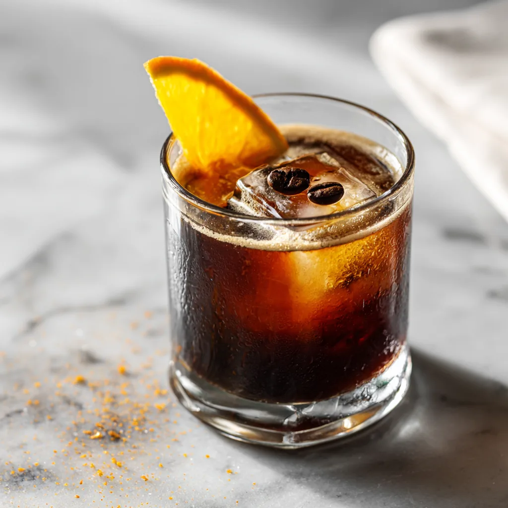 - Garnish with a twisted orange peel and a few coffee beans. Serve immediately.